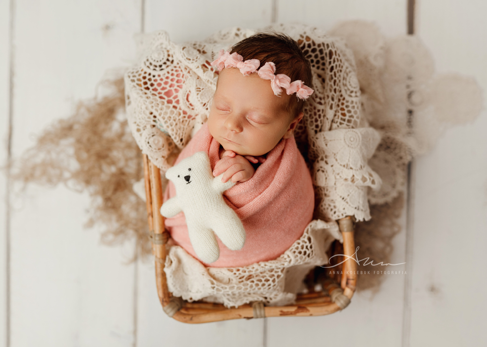 Należy przede wszystkim zaopatrzyć się w zapas pieluszek, a samemu podejść do sesji ze spokojem. Pomieszczenie, w którym będzie wykonywana sesja zawsze jest odpowiednio nagrzane, bo nasz Skarb będzie pozował w głównej mierze nago lub w cieniutkich strojach i owijkach. W czasie sesji korzystam dodatkowo z przenośnego termowentylatora, który zwiększa temperaturę w otoczeniu noworodka i sprawia, że będzie się on czuł niezwykle komfortowo. Wszystkimi kocykami, akcesoriami, ubrankami i ozdobami nie należy się martwić. Posiadam ogromny wybór akcesoriów, które stanowią nieodłączny element każdej sesji. Jeżeli masz jakiś pomysł, który można wykorzystać podczas fotografowania, z chęcią go poznam.