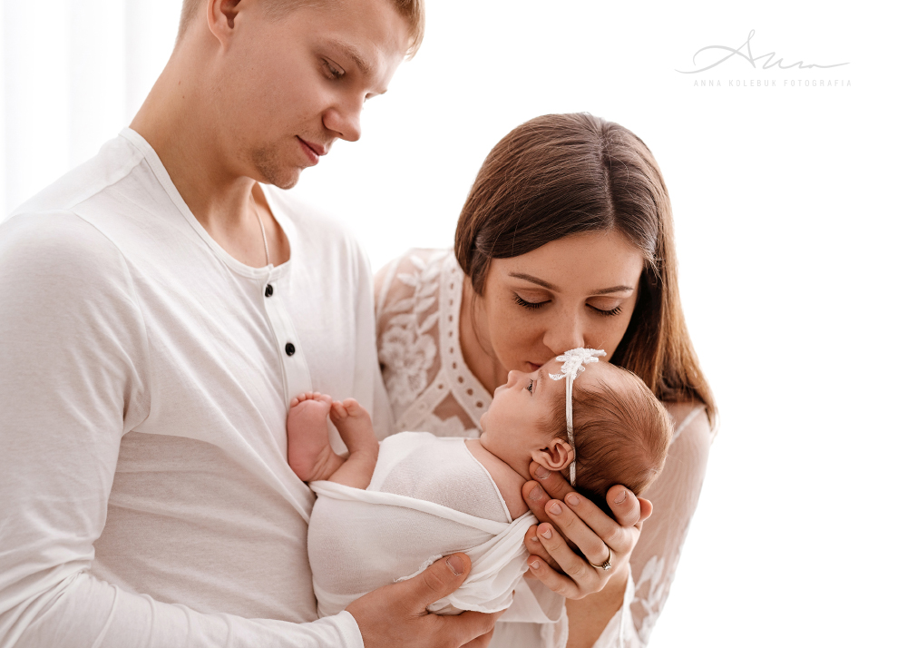 Bezpieczeństwo to podstawa przy pracy z noworodkami. Podczas robienia zdjęć cały czas czuwam nad bezpieczeństwem Maleństwa, a pozycje, w których jest układane są dla niego bardzo naturalne i często przypominają ułożenie dziecka w brzuchu mamy. Podczas wykonywania zdjęć rodzice niejednokrotnie pomagają w sesji i asekurują.